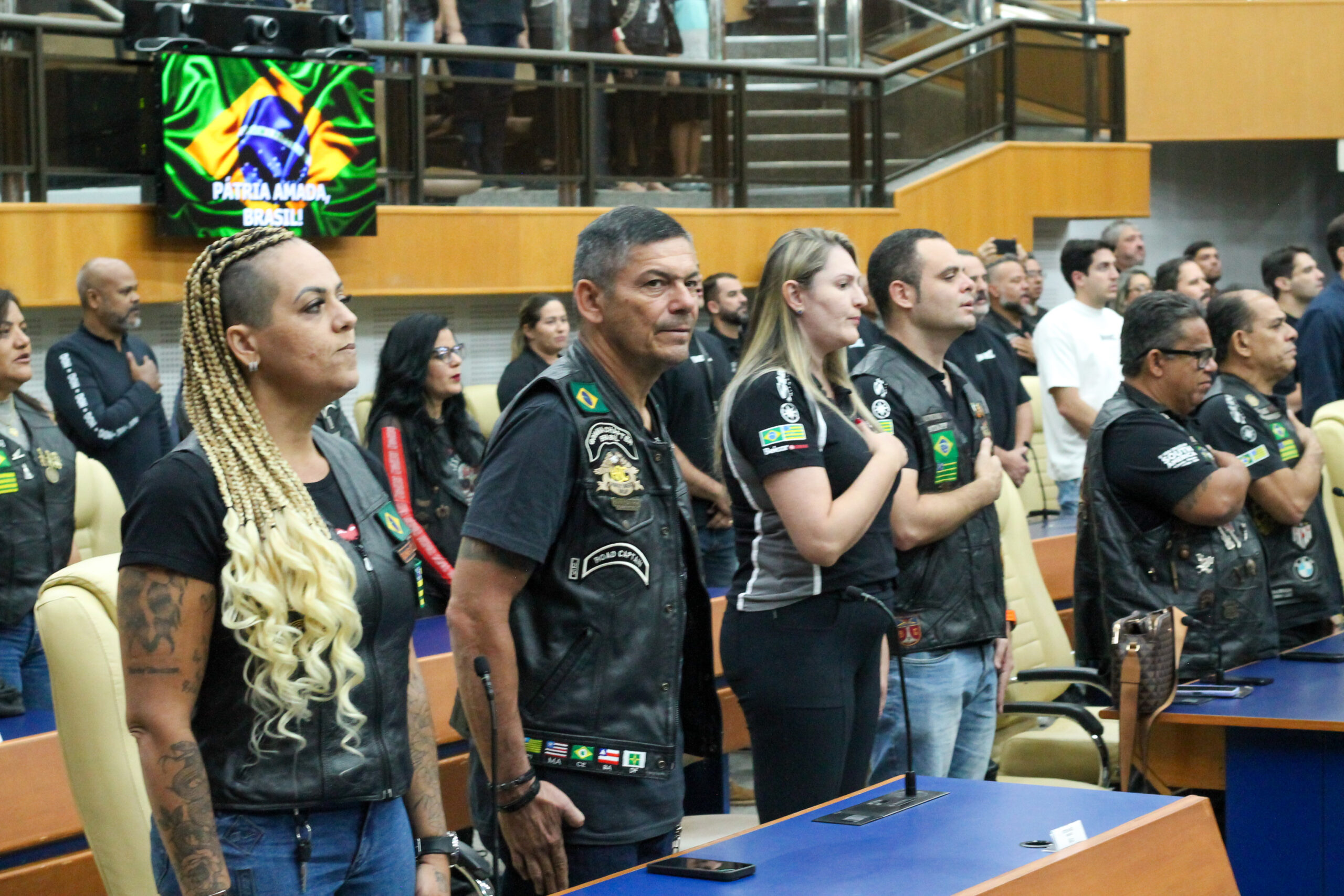 Em uma sessão solene realizada no plenário da Câmara Municipal de Goiânia na última terça-feira (19), o vereador Coronel Urzeda prestou homenagem a dezenas de motoclubes, motogrupos e nomades de motocasais, reconhecendo sua atuação na organização de eventos que fortalecem a cultura motociclística, fomentam o turismo e divulgam municípios goianos. Na mesma ocasião, também foram honradas instituições como o Batalhão do GIRO, o Corpo de Bombeiros e o Batalhão de Trânsito do Estado de Goiás.